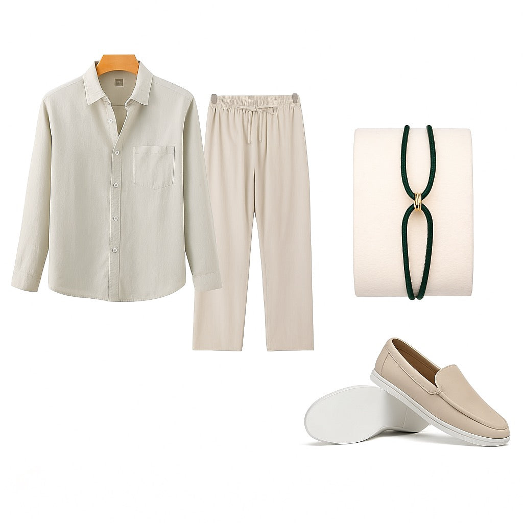 Pantalón de Lino - Beige: Ligeros y casuales, estos pantalones son ideales para un paseo por la playa o un almuerzo informal junto al agua.
